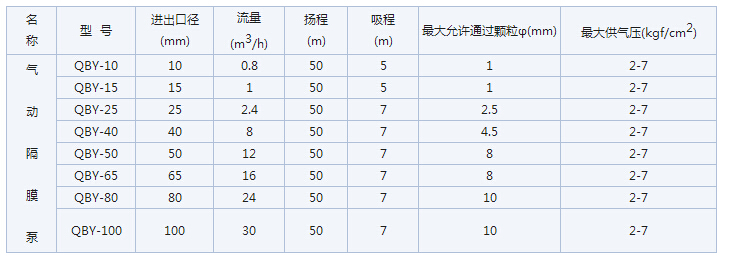 QBY不銹鋼氣動隔膜泵性能參數表